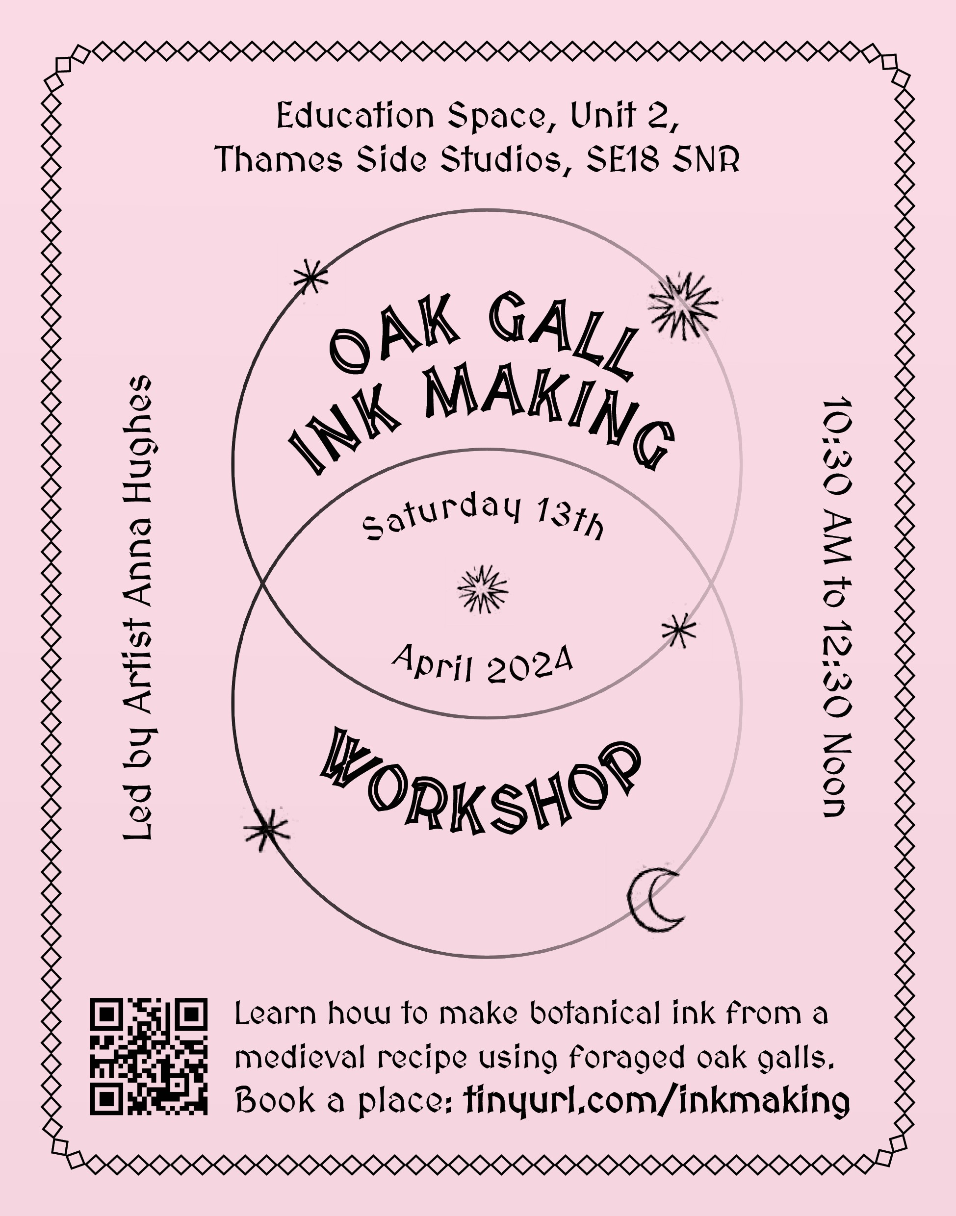 Discover the medieval art of making ink from foraged oak galls at this hands-on workshop. Oak galls are small natural growths produced by the Oak tree and they can be foraged from the woodland floor in Autumn and Winter. You will learn the fascinating history behind this traditional ink-making technique and artist Anna Hughes (Studio 5-15) will demonstrate how to use the ink to create botanical illustrations. You will have time to experiment with these techniques and will leave the class with a recipe and instruction card, and a labelled bottle of your own hand-made ink. This deeply pigmented ink is permanent and colour fast and can be used for drawing, painting, writing and illustration. Date: Saturday 13th April Time: 10.30-12.30 Location: The Education Space, Unit 2 Price: £37.54 tinyurl.com/inkmaking Follow Anna on Instagram @_annahughes