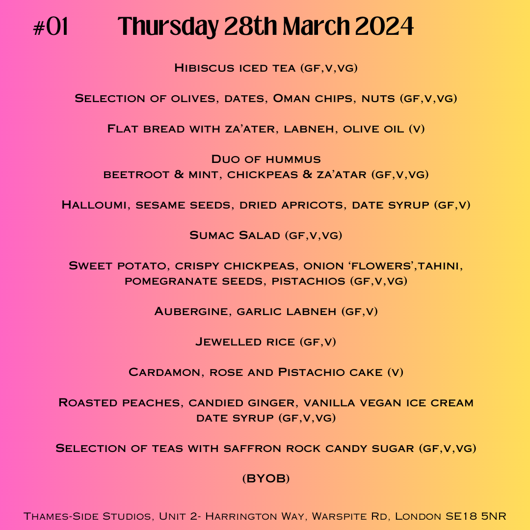 Who’s Hungry? is a Supper Club founded by Savannah du Quercy (Studio TB-126) with its inaugural dinner taking place on Thursday 28th March, 7-10pm, in the Education Space (Unit 2). Grounded in the principles of community, sharing, generosity and nourishment, Who's Hungry? aims to create a space where creatives can meet, foster new connections, initiate dialogues. This is all set against the backdrop of shared, home-cooked, vegetarian cuisine. The first supper is inspired by Savannah's recent trip back home to the United Arab Emirates and Middle Eastern flavours. It was important for Savannah to make this project accessible to as many people as possible. Therefore, she decided to make the first supper a pay what you can event. The recommended price for the dinner is between £15-£20 per person. However if you are unable to pay this, please pay what you can. Please see the menu below as well as the Eventbrite link to book your place (20 places available). www.eventbrite.co.uk/e/whos-hungry-01-tickets Follow on Instagram @whoshungrysupperclub For enquiries email whoshungrysupperclub@gmail.com