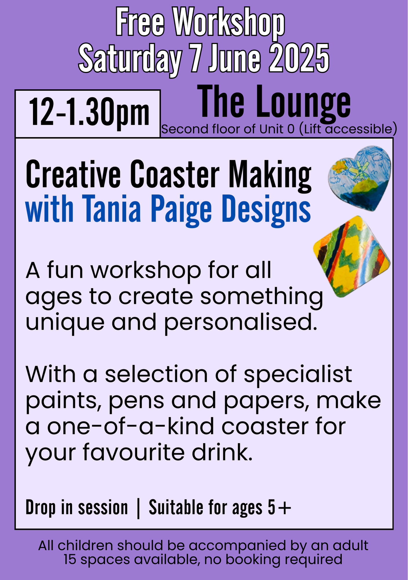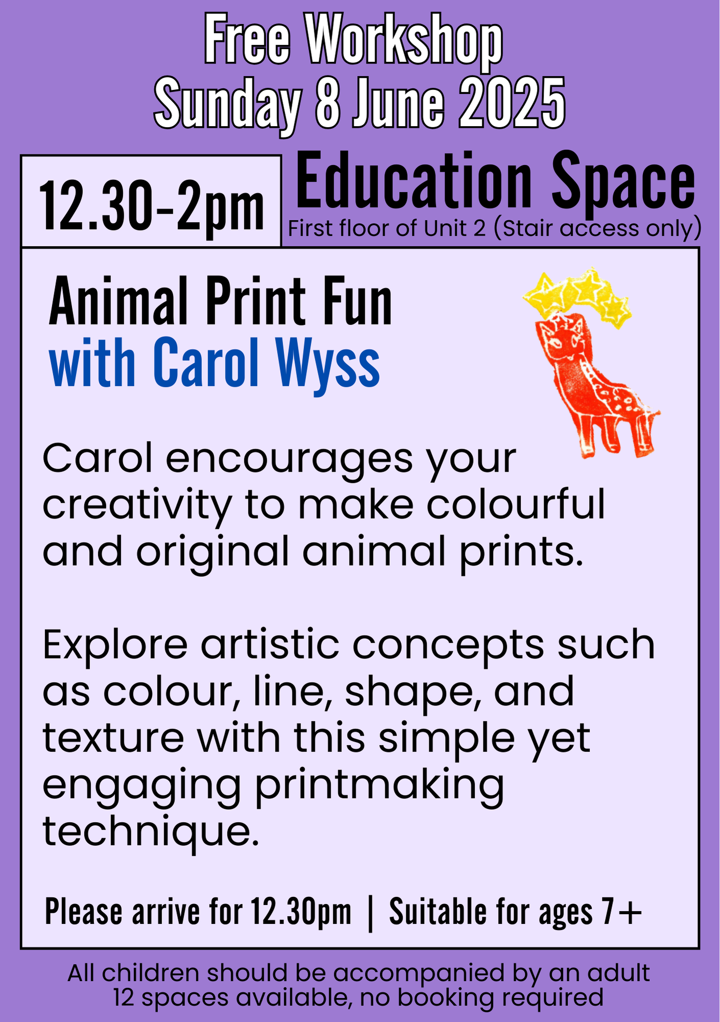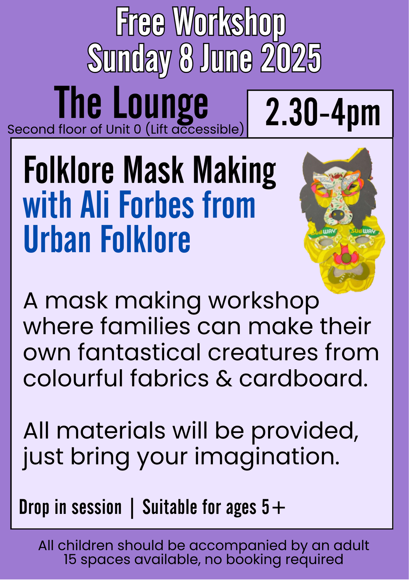 We have a variety of family friendly workshops to look forward to at our Open Studios event. All children should be accompanied by an adult. Limited spaces, no booking required.