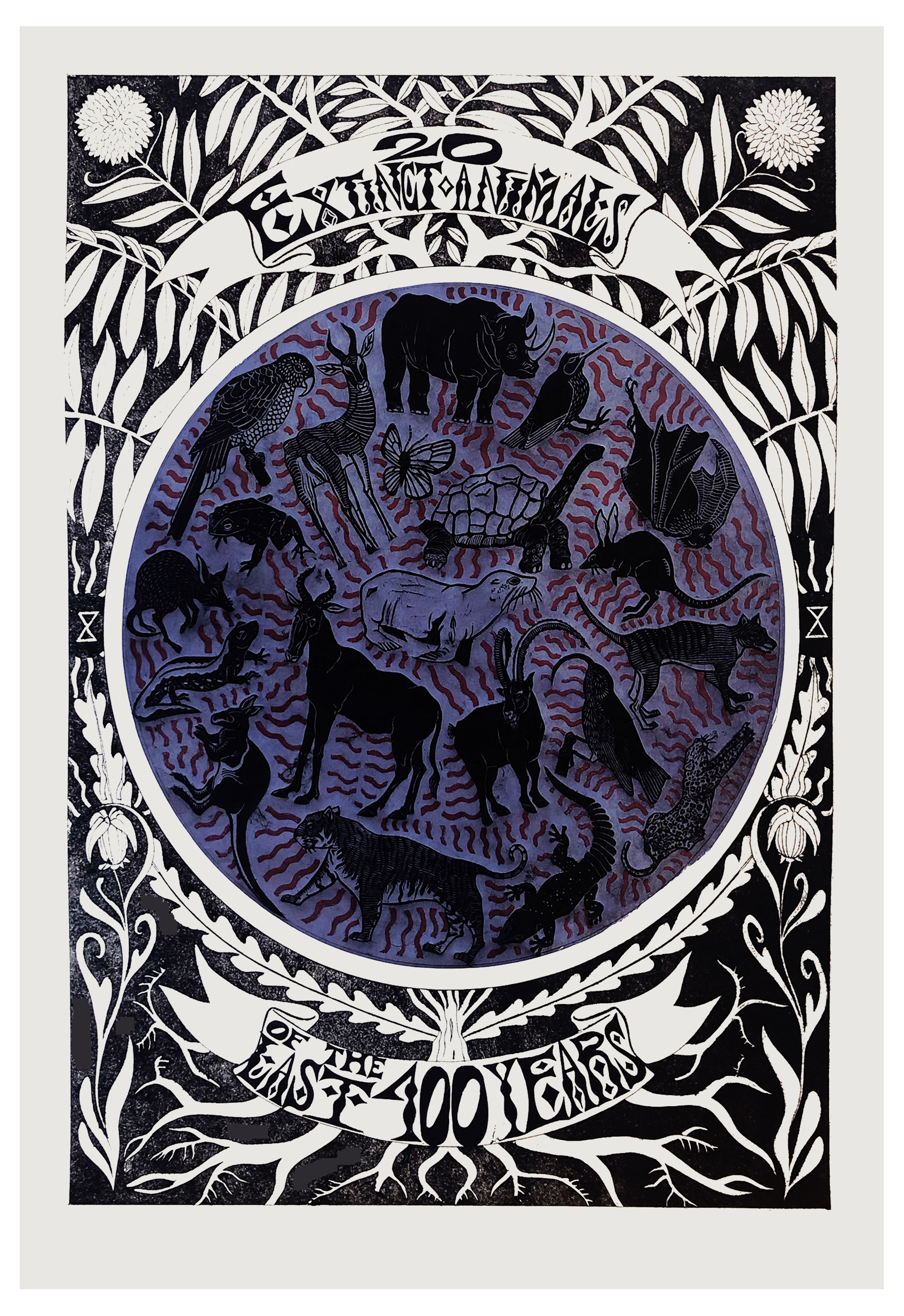 ‘20 Extinct Animals (unframed)’