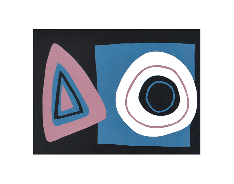 For the past 30 years my printmaking has been exclusively in relief print, both wood and linoleum, mainly using the reduction method to achieve layers of bold colour and a simplification of form. I’m interested in the interaction between the shapes and colour and the relationships and tensions these throw up in the images. I am always striving to get the images back to the their most basic elements, discarding any extraneous mark-making, believing that what is left out is just as important as what is put in.