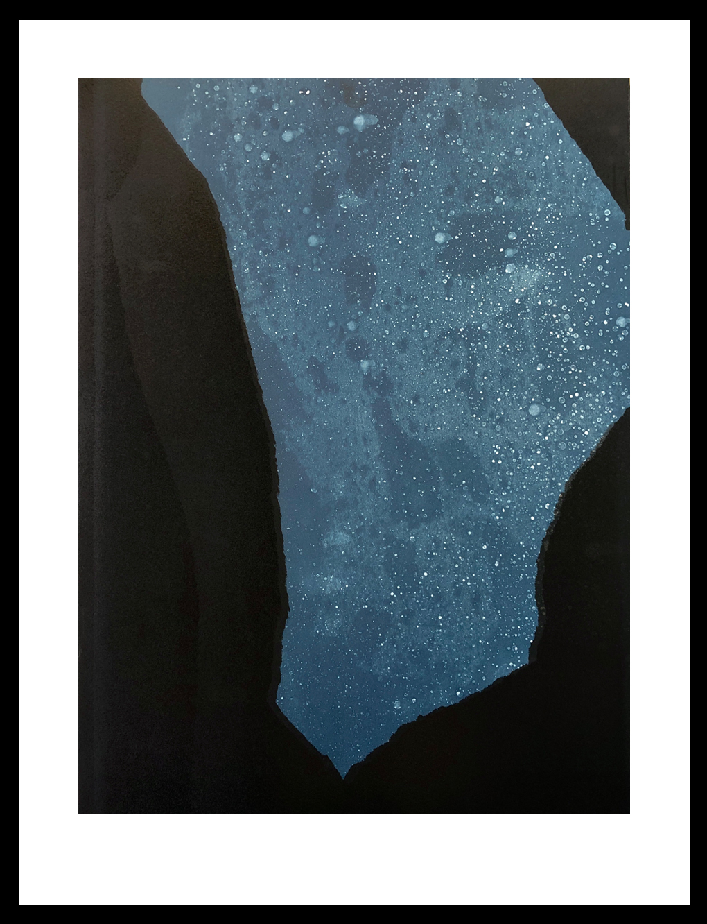 Grace Hailstone’s work is rooted in the subject of surreal and imagined landscapes – caves, volcanic lands, and geological forms, often linked to lived experiences and memories of places. Her process starts with making drawings in tandem with music, in a state of reverie. Using printmaking techniques including etching, linocut and wood engraving, Grace creates images with contrasting lines and shapes and considered introduction of colours and textures, interpreting the experience of landscapes suspended between reality and fiction.