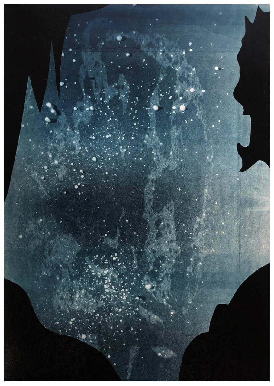Grace Hailstone’s work is rooted in the subject of surreal and imagined landscapes – caves, volcanic lands, and geological forms, often linked to lived experiences and memories of places. Her process starts with making drawings in tandem with music, in a state of reverie. Using printmaking techniques including etching, linocut and wood engraving, Grace creates images with contrasting lines and shapes and considered introduction of colours and textures, interpreting the experience of landscapes suspended between reality and fiction.