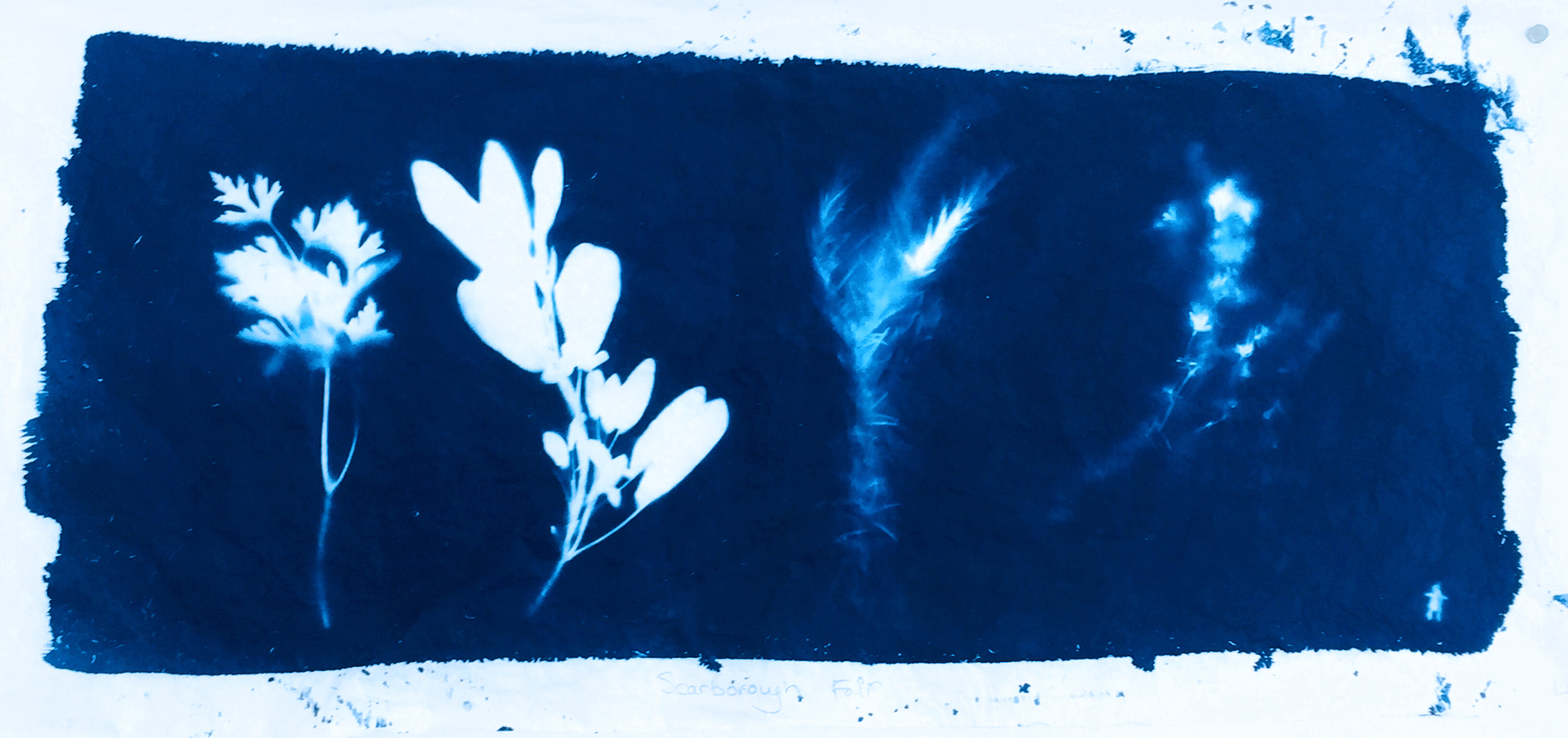 Timeless - transitory or ephemeral moments in the natural world are captured using cyanotype print making. Within this ancient process each unique mono print uses just the suns’ rays and the passage of time to transfer, in 3D, the essence of selected objects onto the delicate Japanese tissue paper.
