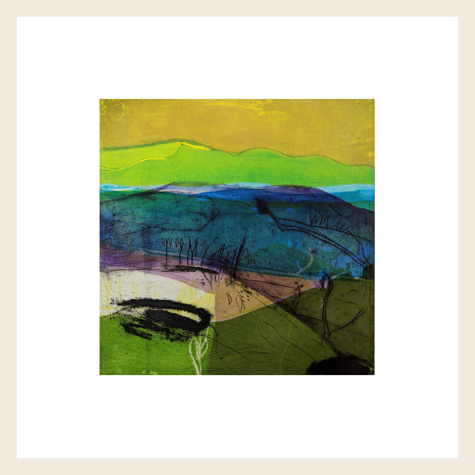 Louise’s prints and paintings are primarily concerned with the landscape. Some are based on childhood memories, reflecting on the countryside and coast of the west of England where she spent her early childhood. However some of the prints are created from small paintings and drawings made on location in sketchbooks.